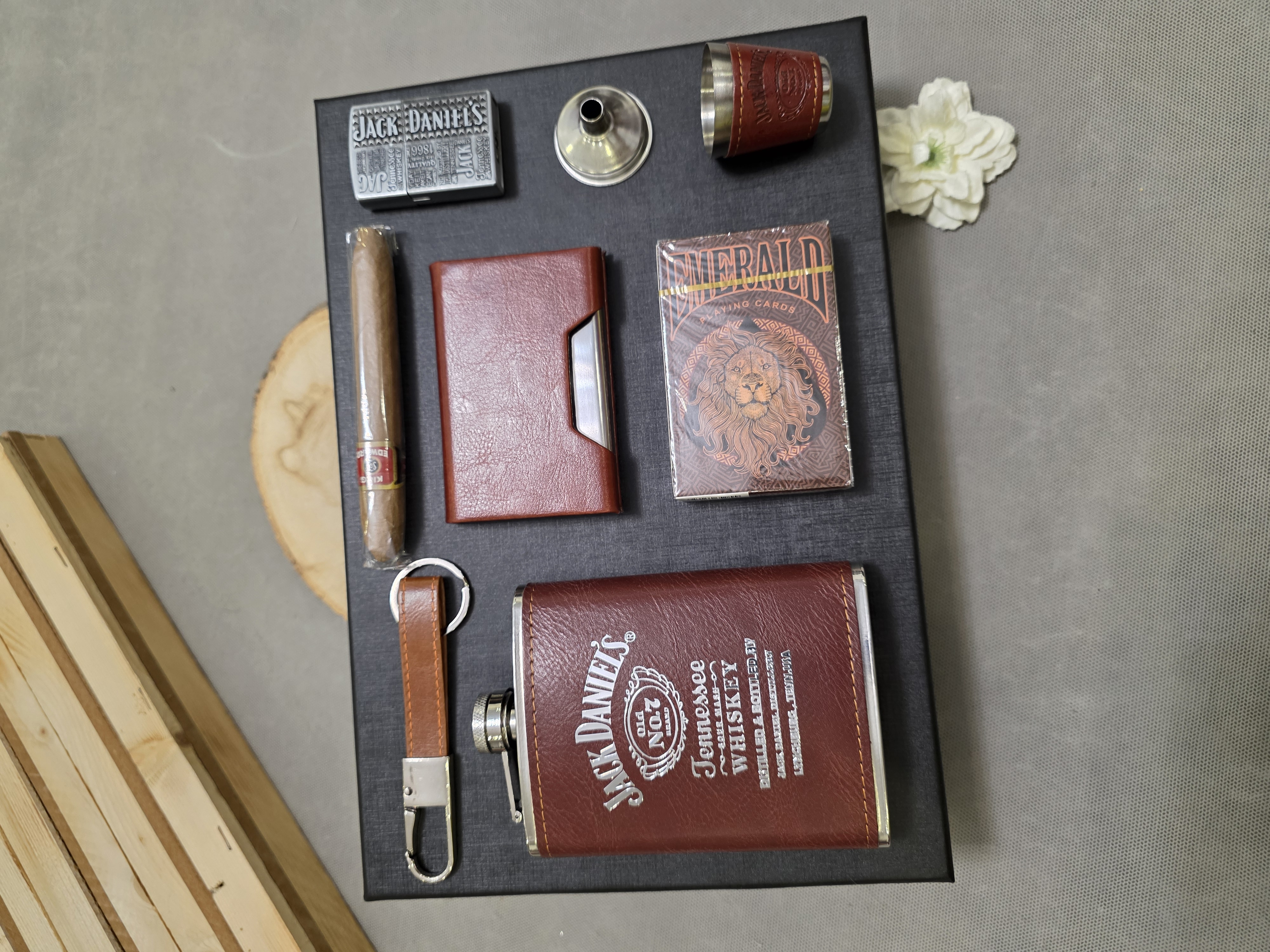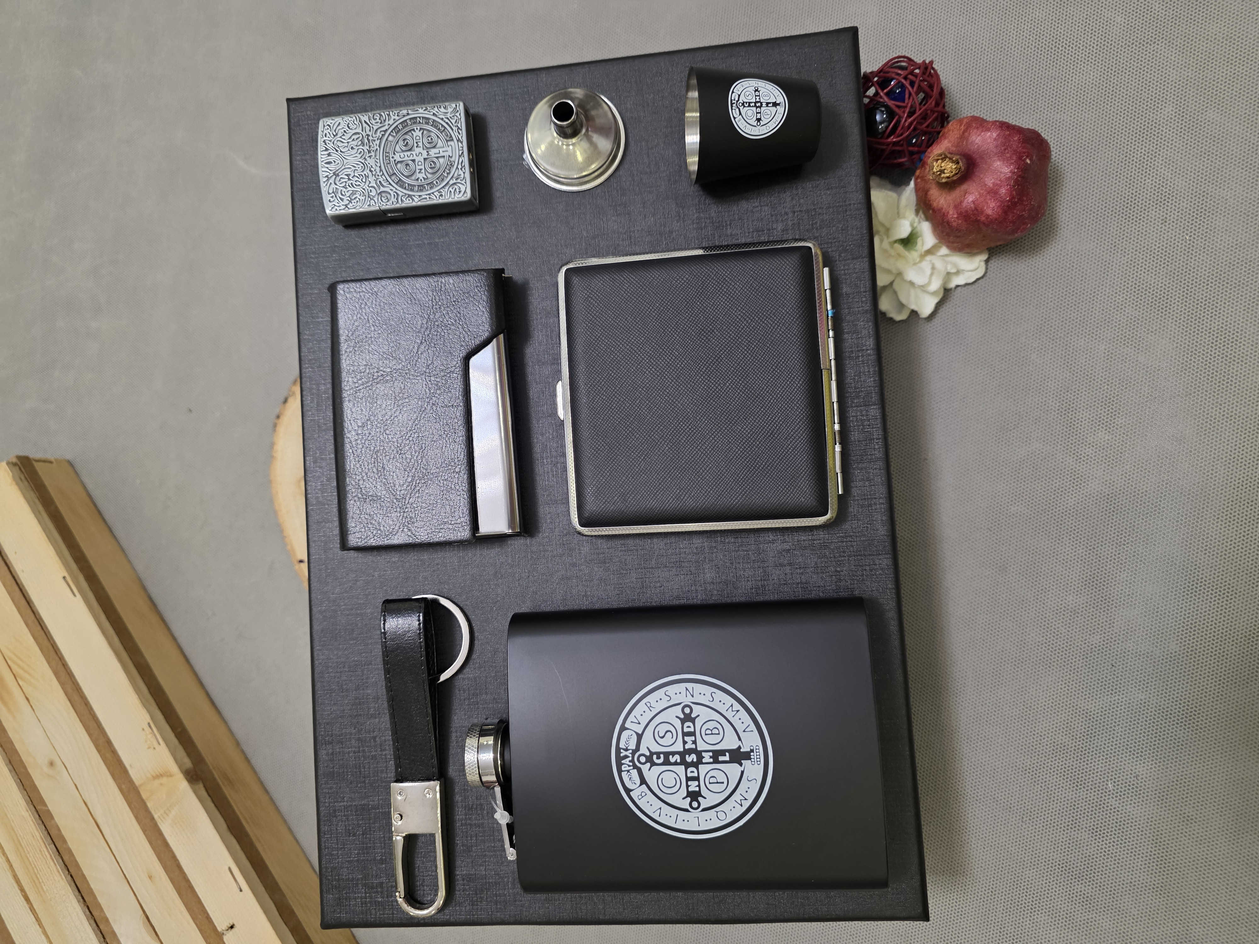 - ترکیب هوشمندانه: چیدمان دقیق آیتمها (مانند بطری جیبی، شات، فندک و جای سیگار) که یک پکیج کامل و کاربردی را میسازد.