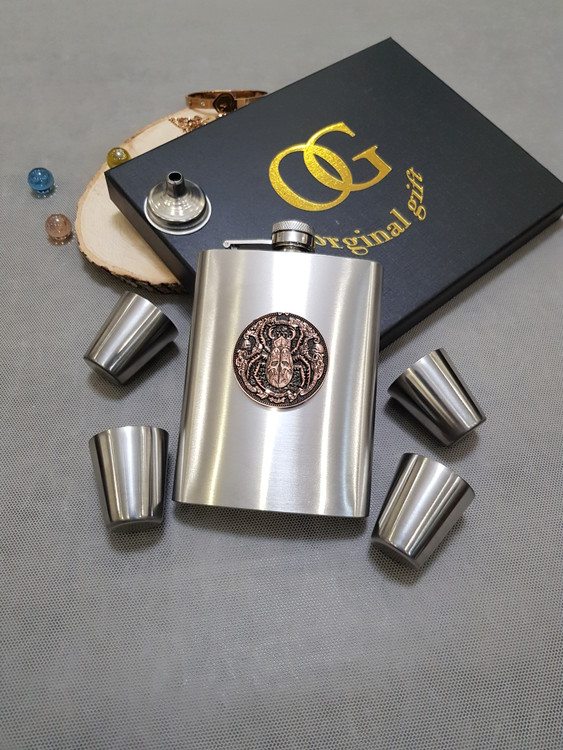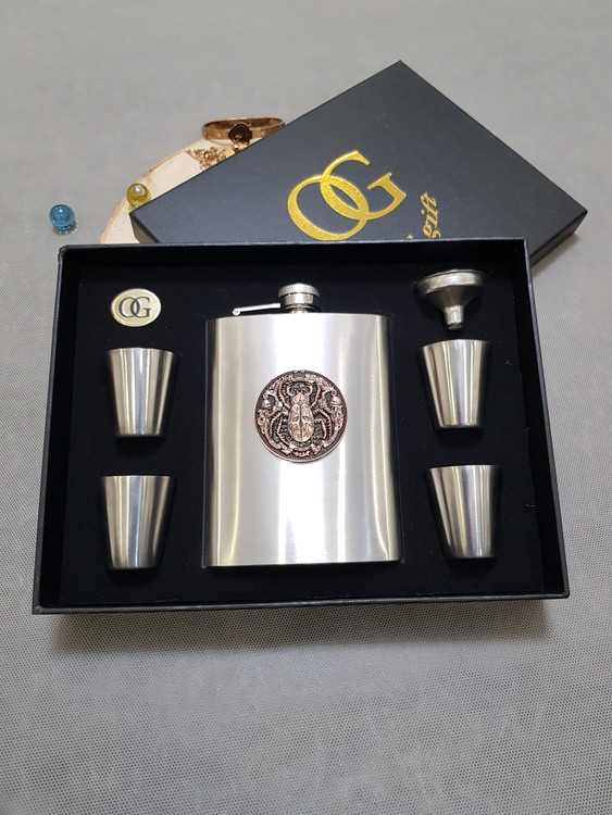 ست هیپفلاسک استیل گلد یه ست شیک و باکیفیت با رنگ ثابت طلایی و طرح جذاب گوزن ( نماد قدرت و نیروی بدنی ) با ظرفیت ۲۷۰ سیسی به همراه ۴ عدد شات و یک قیف