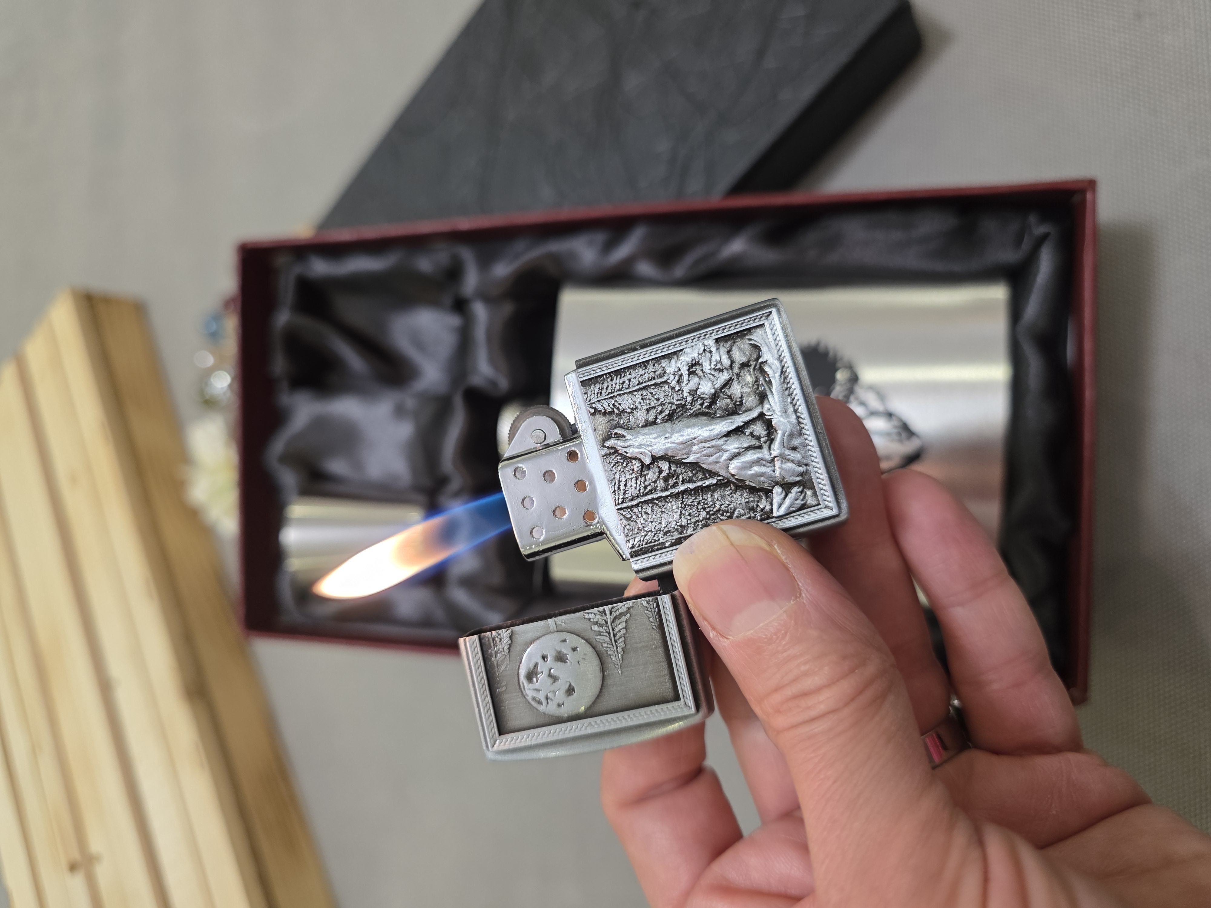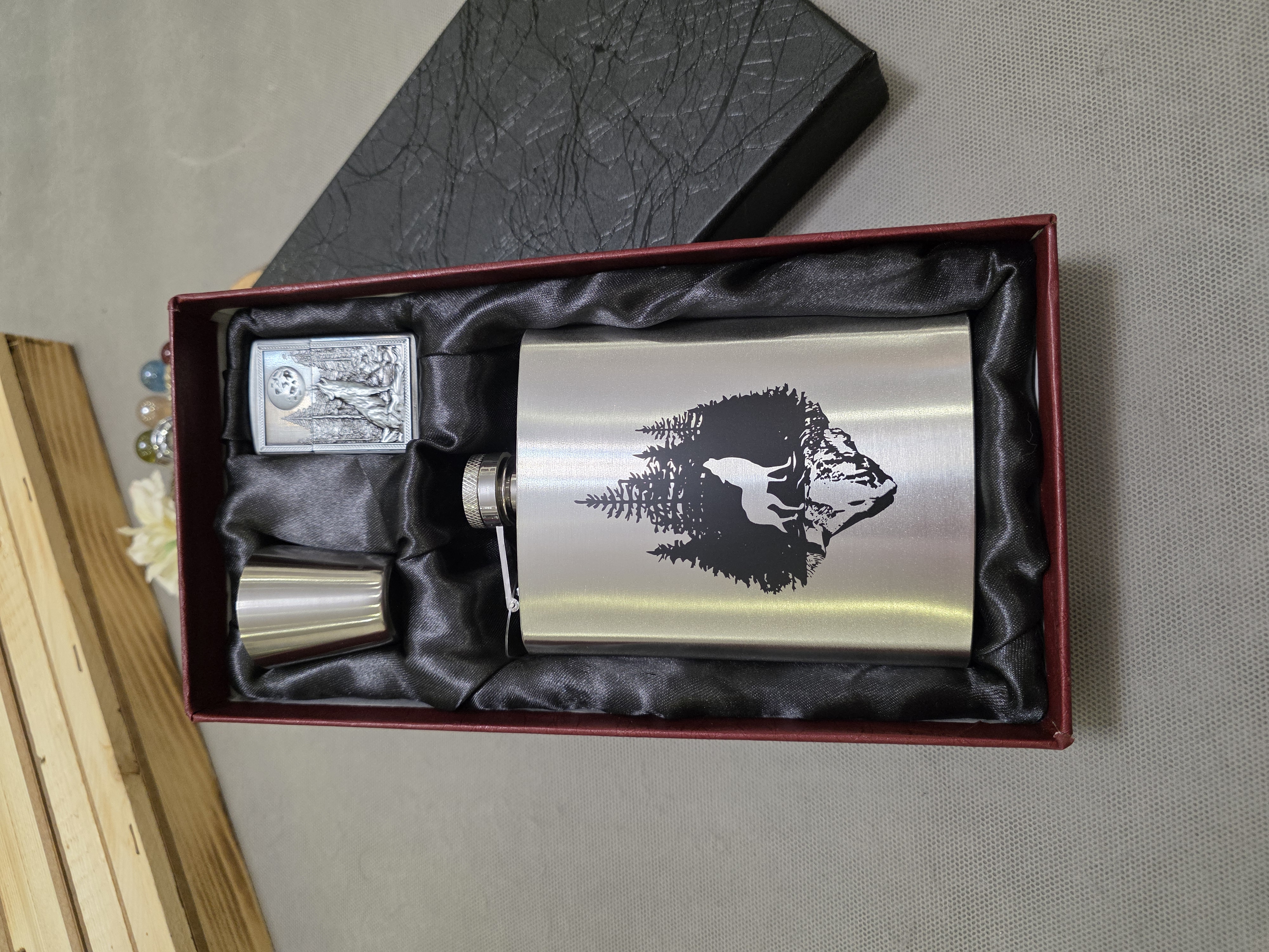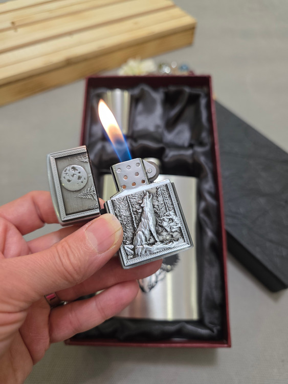 بطری جیبی استیل فندکدار طرح گرگ