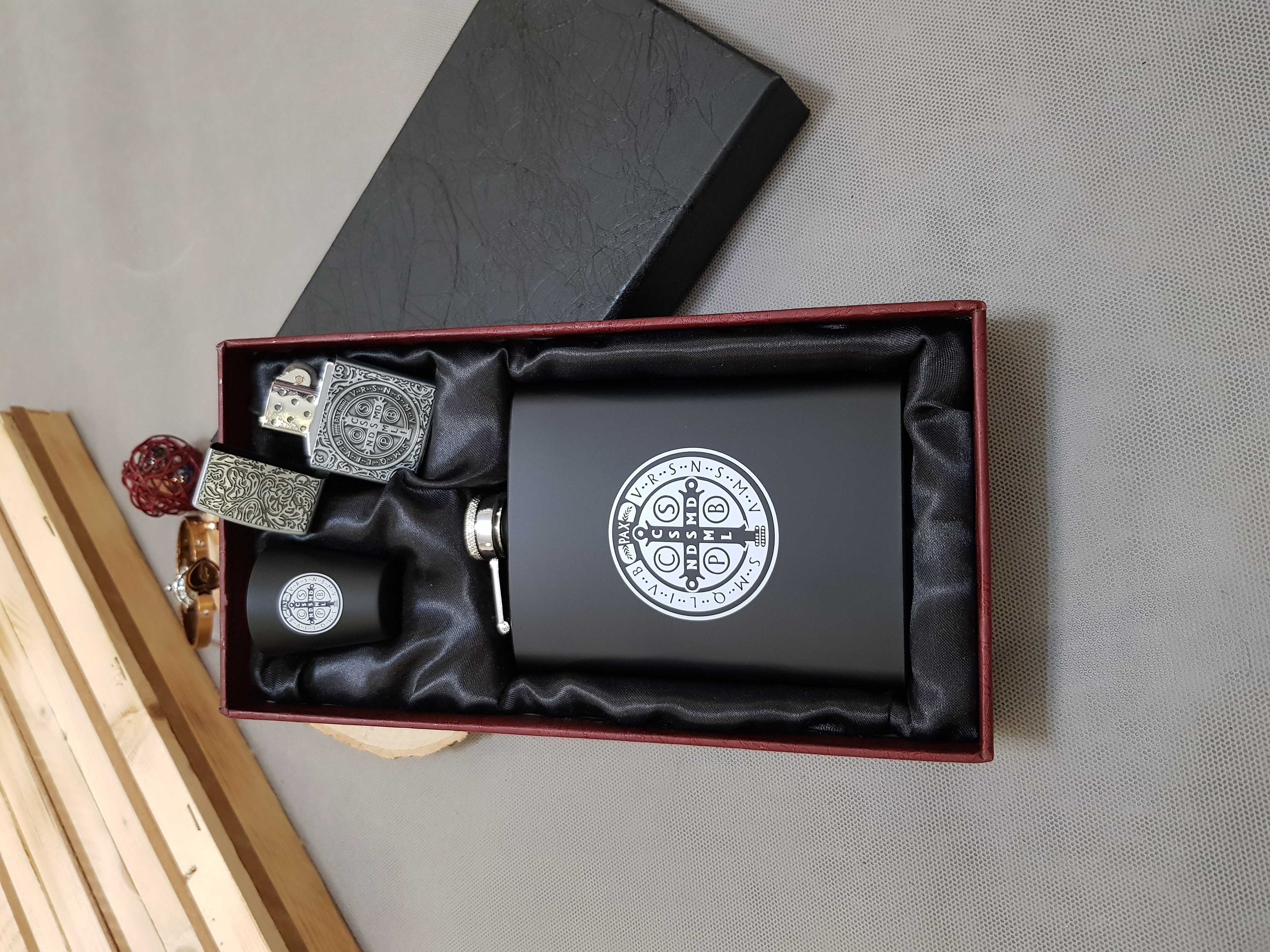 ست بطری جیبی فندکدار استیل پلاکدار کنستانتین
