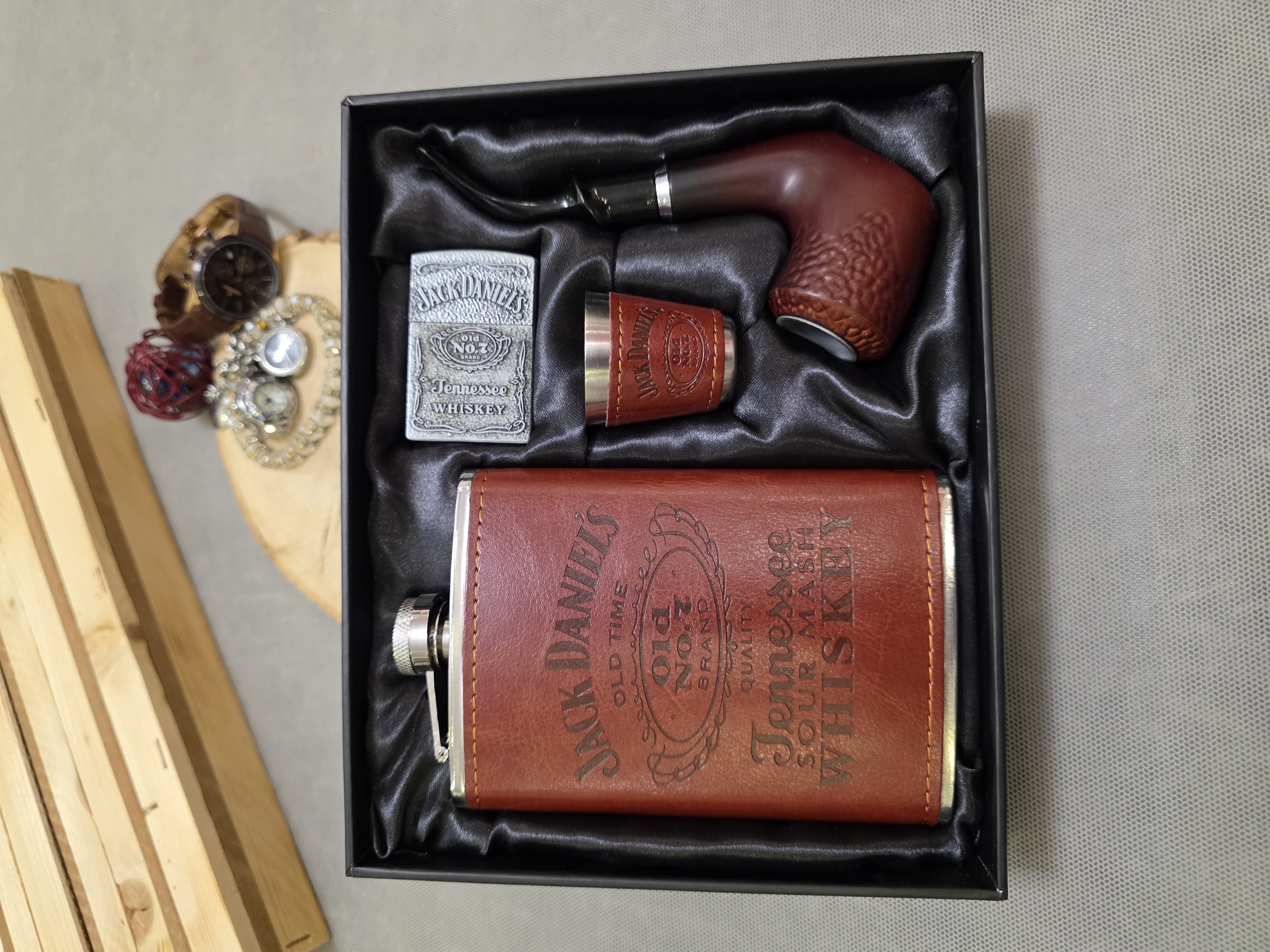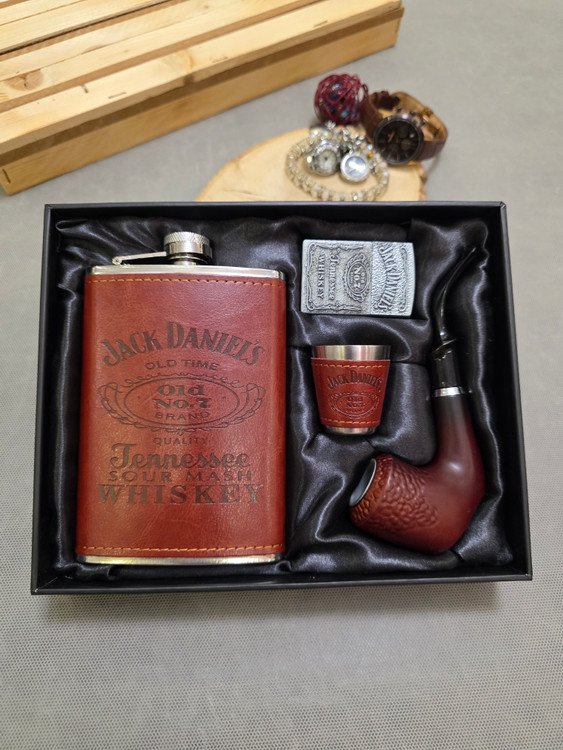 بطری جیبی جک دنیلز به همراه پیپ و فندک وشات