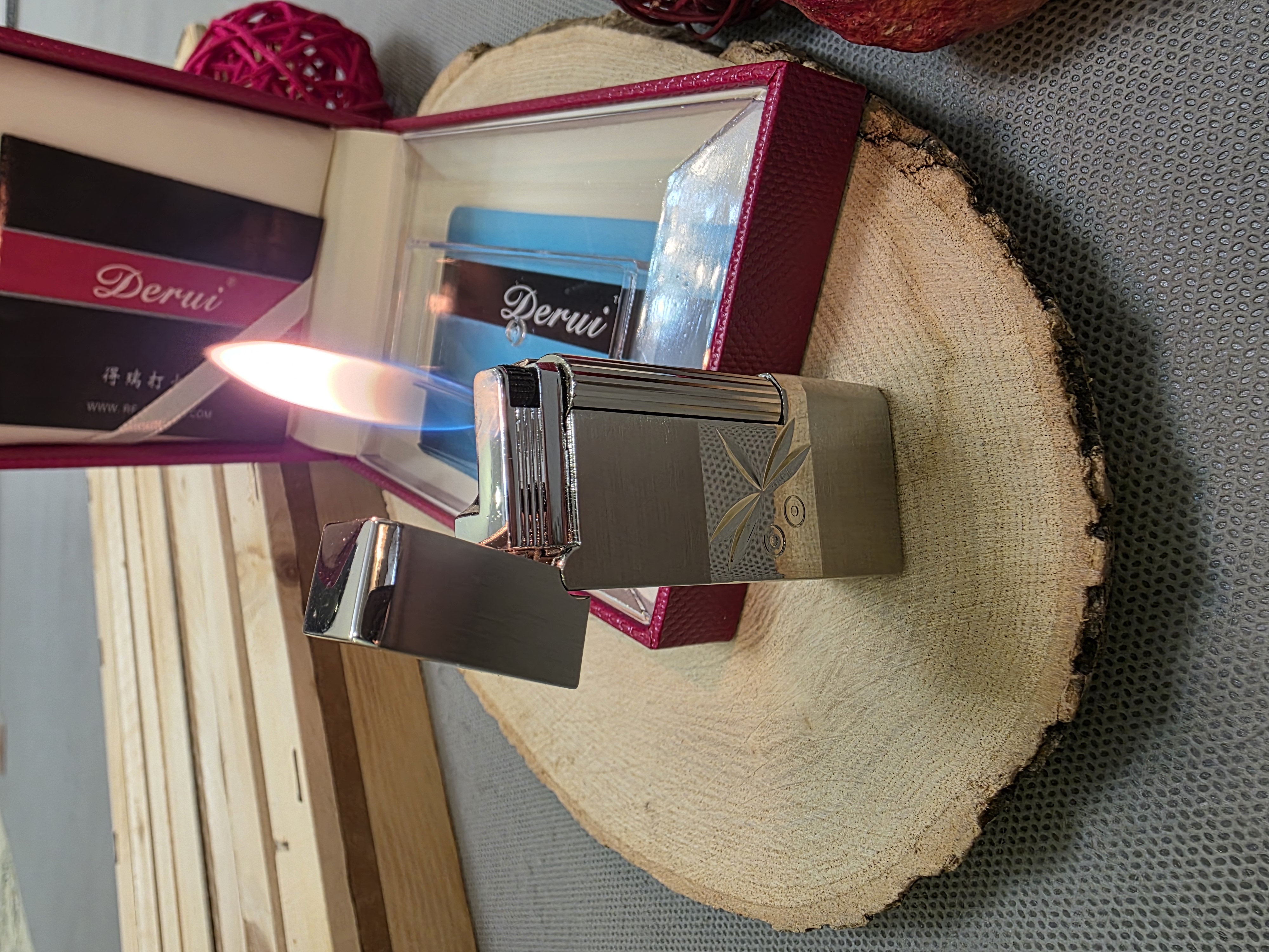 فندک گازی بغل زن از برند معروف derui یک هدیه ماندگاربرای مناسبتها رنگ مشکی نقره ای با شعله معمولی قابل تنظیم