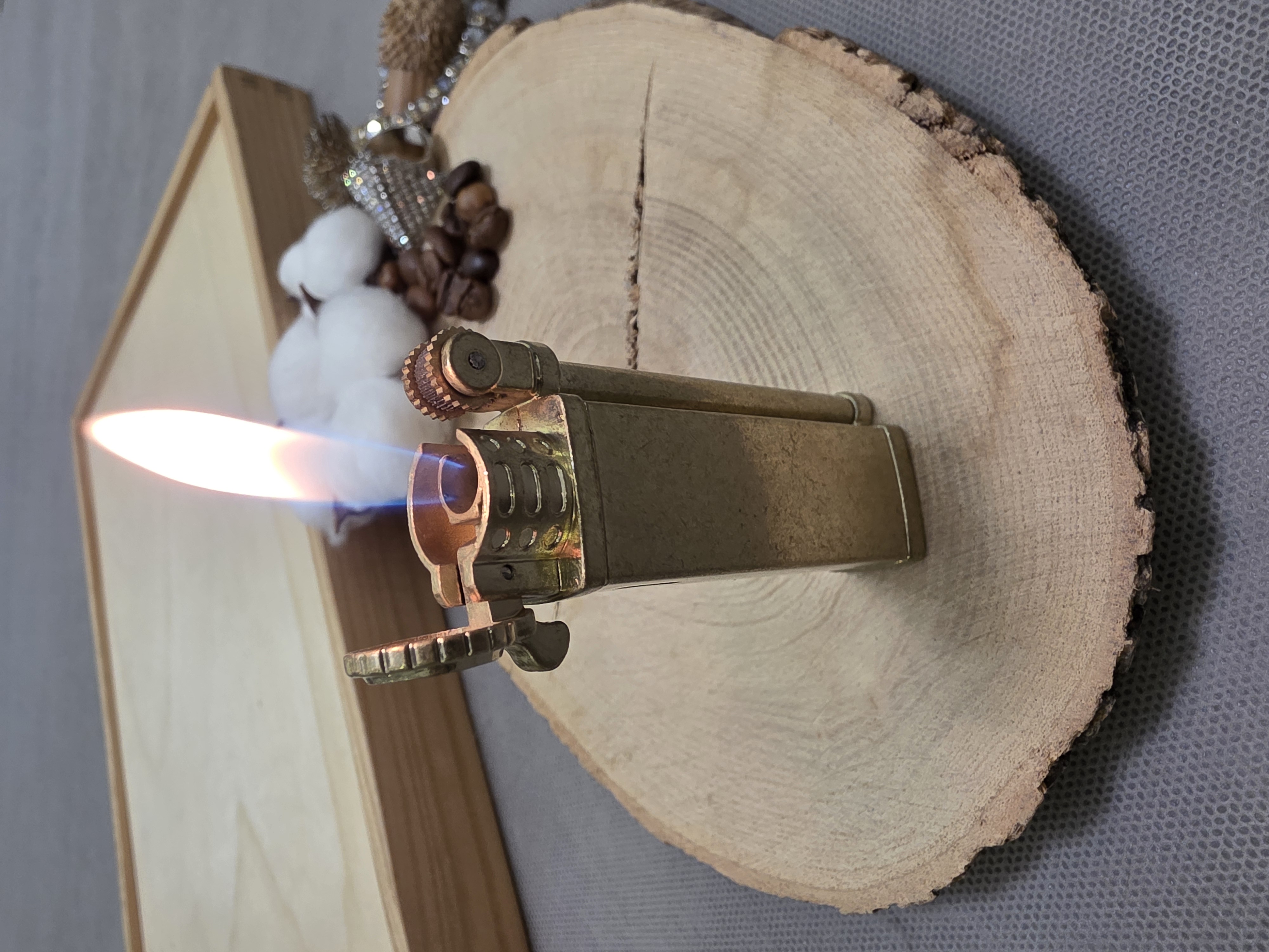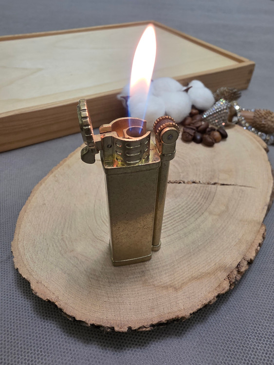 فندک گازی فلزی با روکش چرم با شعله اتمی رنگی