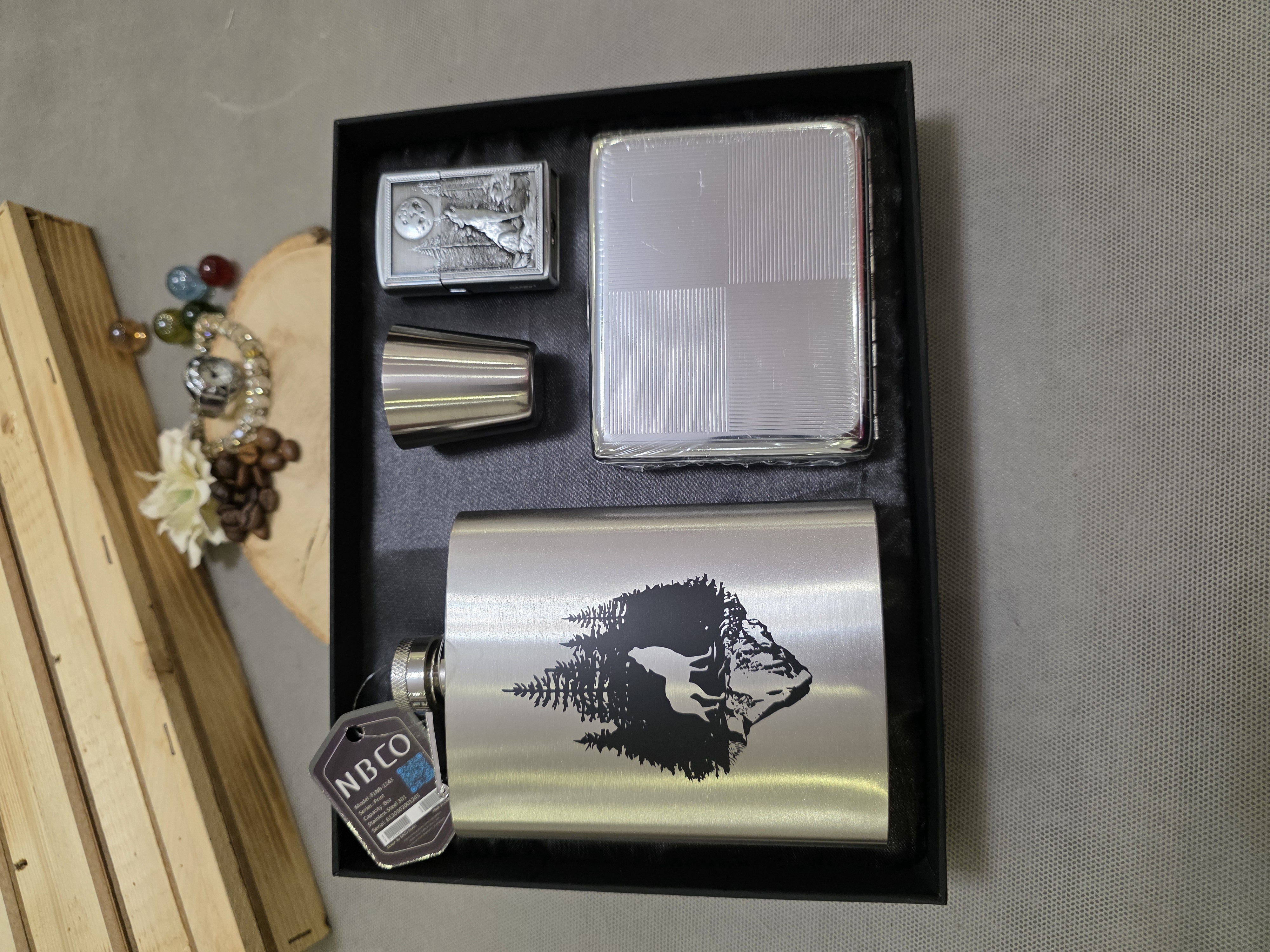 دستهبندی: بطری جیبیجنس: استیل ضدزنگ و ضدبوحجم: ۲۴۰ و ۱۵۰ سیسیسوخت فندک: گازیجنس جاسیگاری: استیل داخل فنری