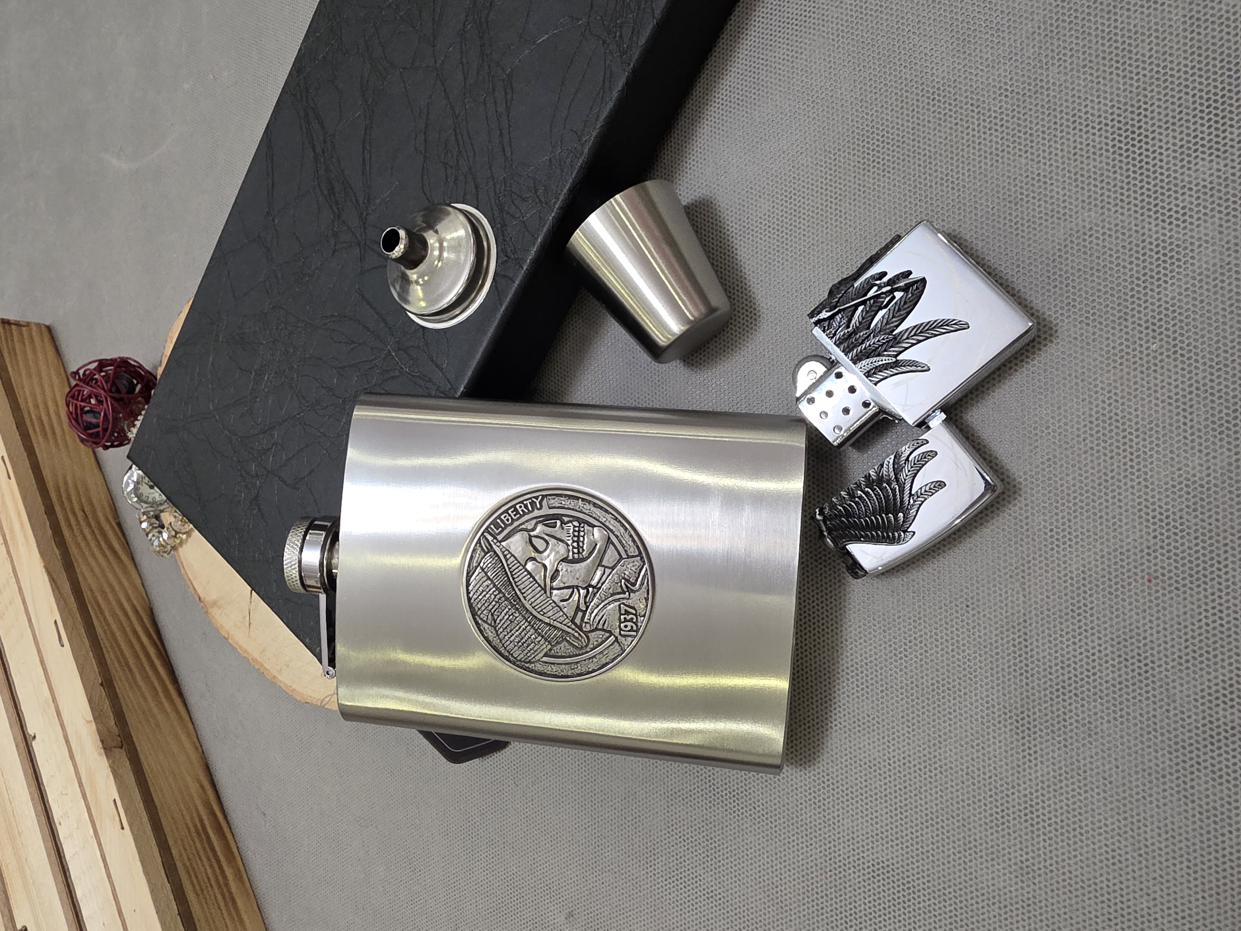 ست قمقمه جیبی استیل فندکدار با پلاک جذاب اسکلت