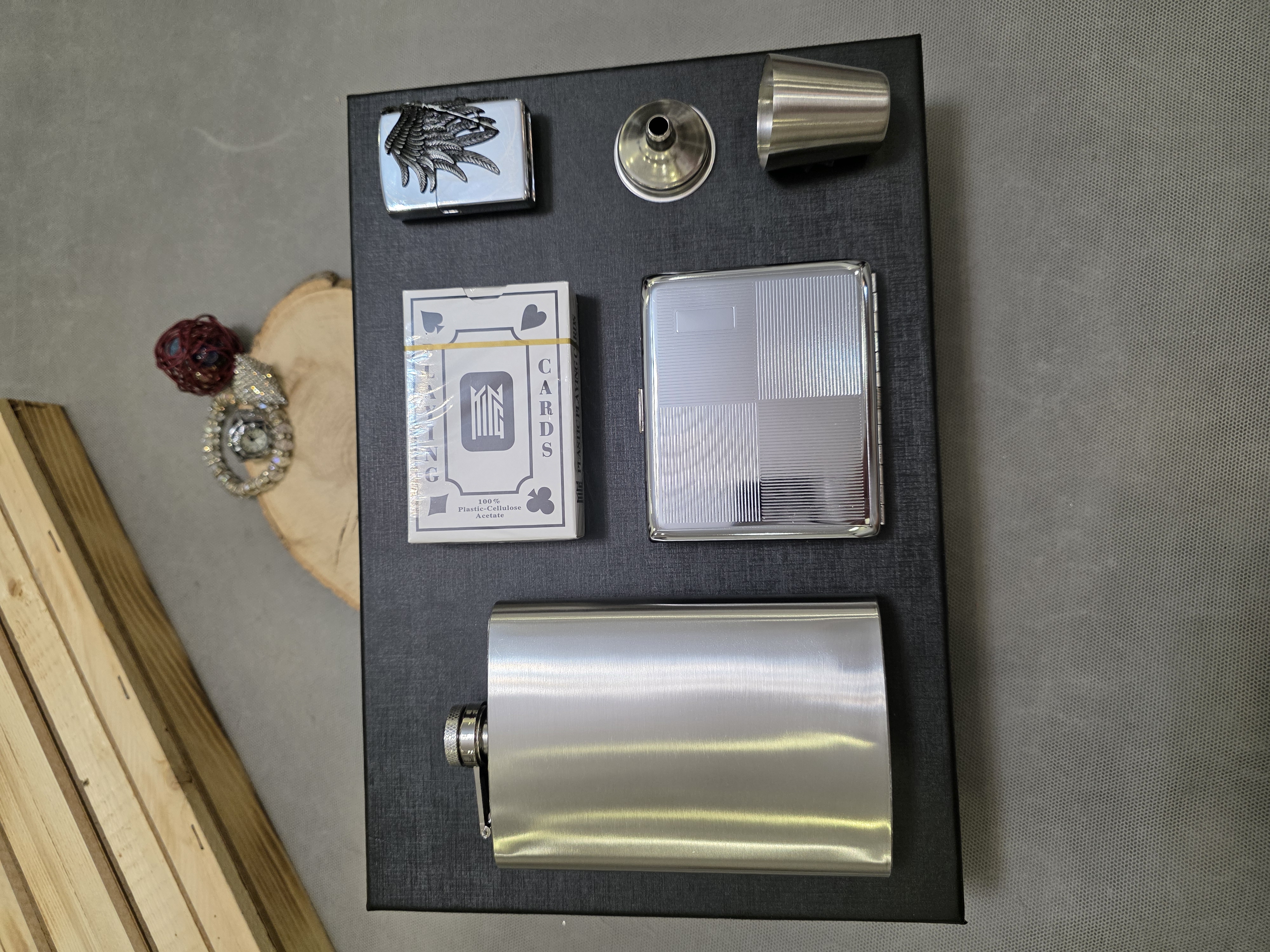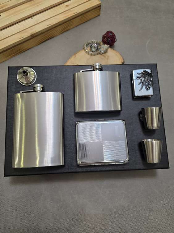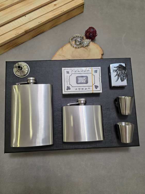 - ست دوقلو با جاسیگاری: شامل دو عدد بطری جیبی و یک جاسیگاری ست.