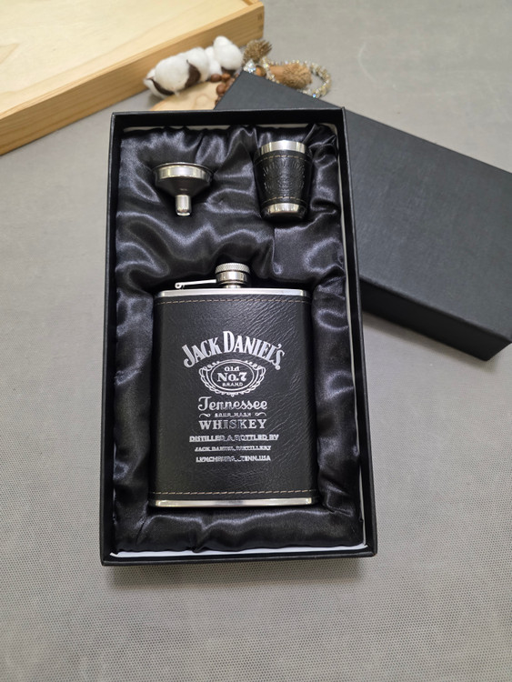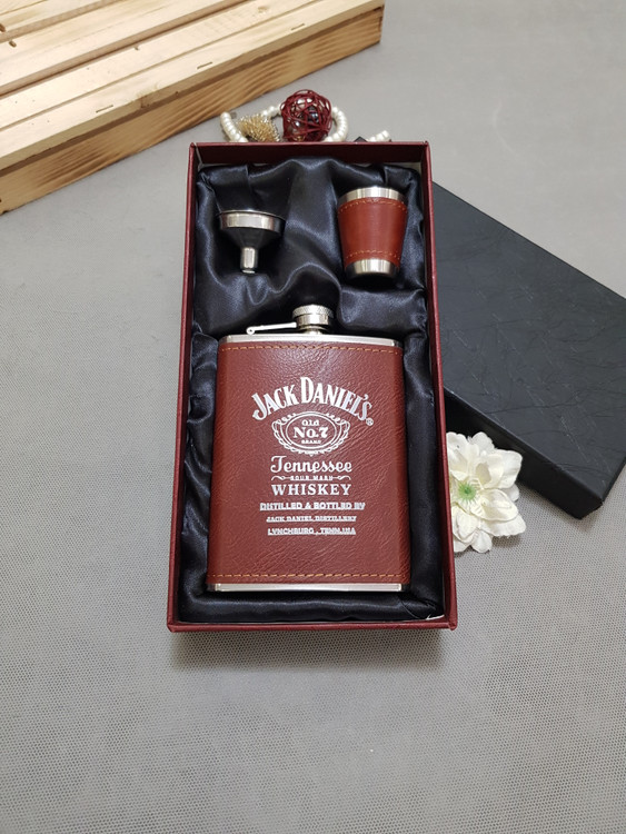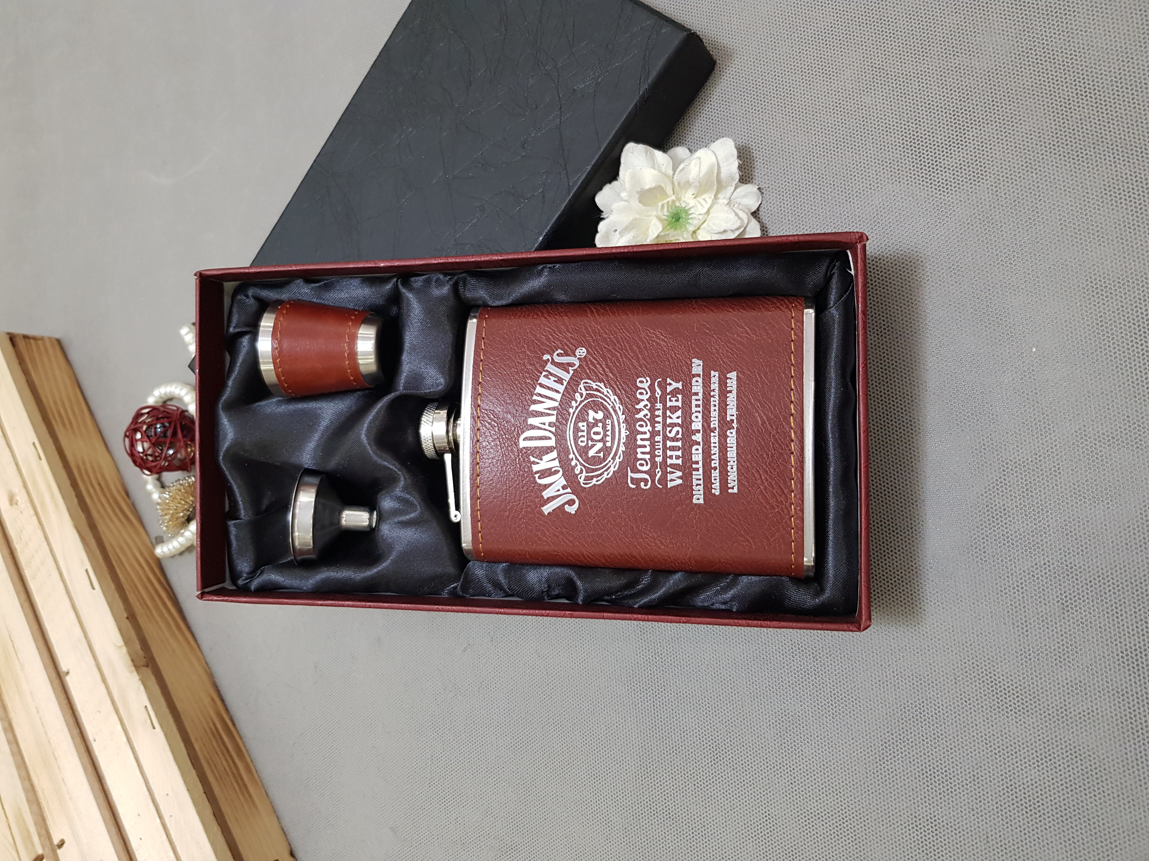 بطری جیبی تک شات با روکش چرم مصنوعی و طرح برند جکدنیلز، انتخابی ایدهآل برای حمل نوشیدنی مورد علاقهتان در سفر، کمپینگ و مهمانیهاست.
